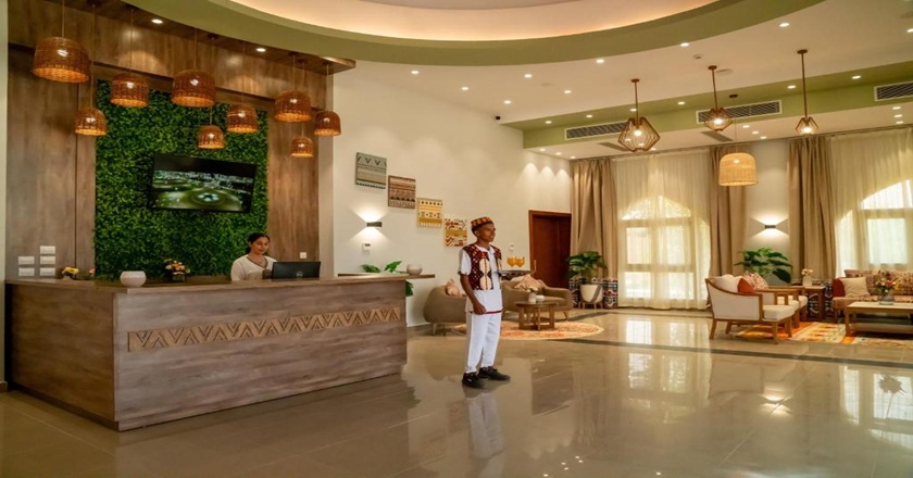 Das Resort verfügt über eine moderne, großzügige Anlage mit Außenpool, Sonnenterrassen, Gartenbereichen sowie kostenfreiem WLAN. Eine 24-Stunden-Rezeption, Zimmerservice, Concierge-Leistungen und Parkmöglichkeiten stehen den Gästen zur Verfügung. Die ruhige Atmosphäre macht das Hotel besonders attraktiv für Kulturreisende und Gäste, die Entspannung suchen.